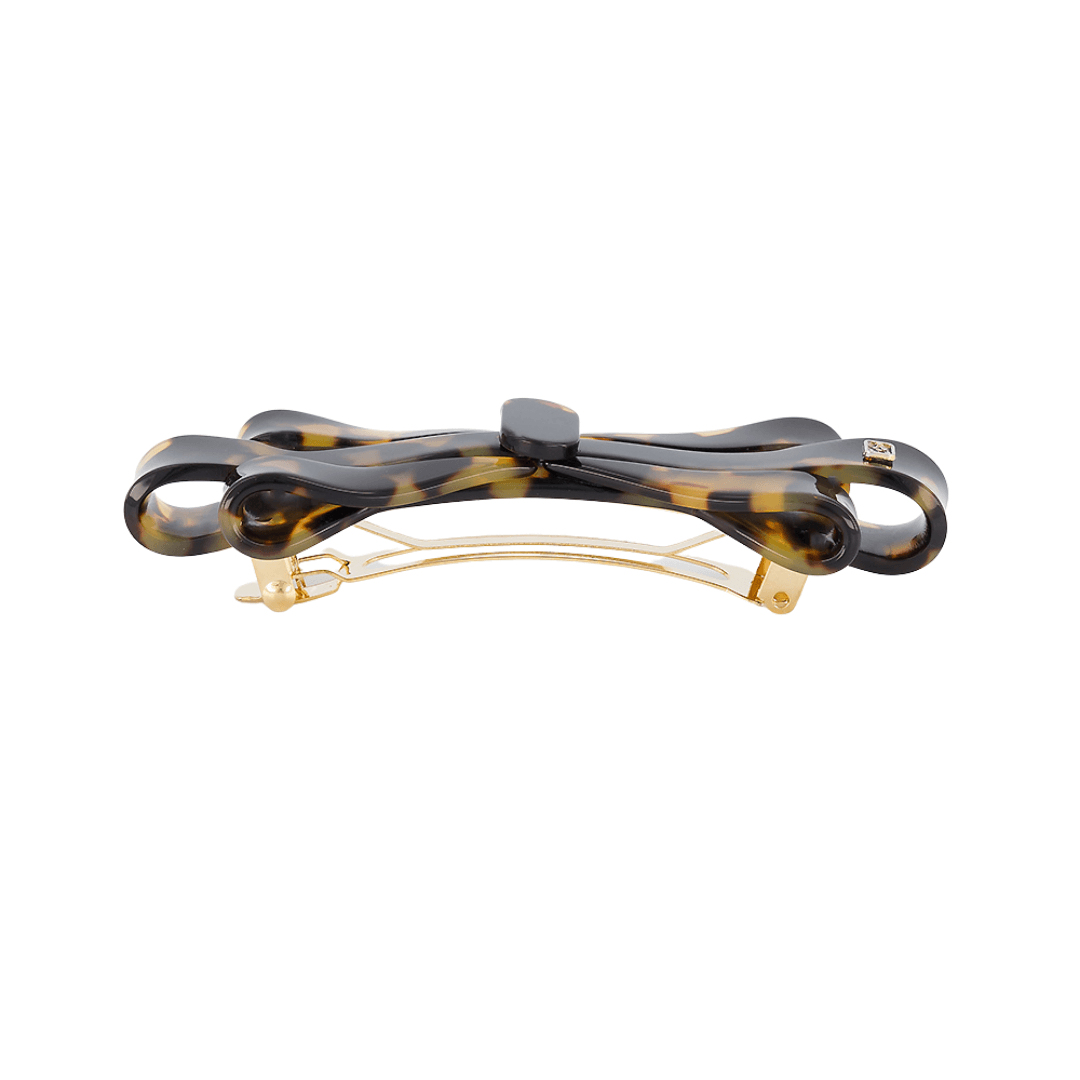 Klasik Fransız estetiğini modern çizgilerle buluşturan Alexandre de Paris’in “Châtelet” modeli, zarif fiyonk formuyla öne çıkar. Kaplumbağa kabuğu desenli yüzeyiyle sofistike bir görünüm sunan bu toka, günlük kullanımlarda doğal bir şıklık, özel davetlerde ise sade bir zarafet sağlar. Fransız el işçiliğiyle üretilen bu özel parça, saça zarar vermeden güçlü bir tutuş sunar ve her stile zamansız bir dokunuş kazandırır.