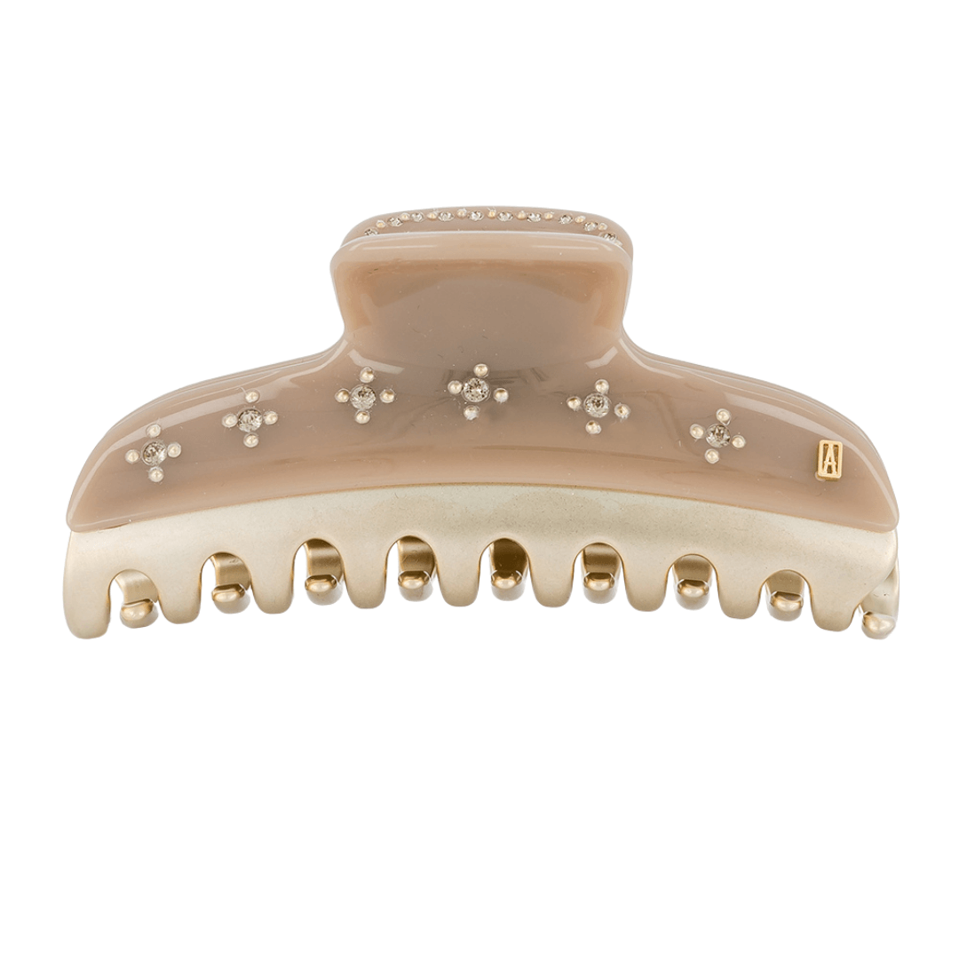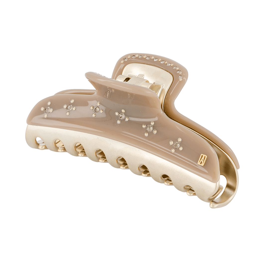 Klasik ve zarif tasarımıyla öne çıkan Soleil Levant, Alexandre de Paris’in Fransız atölyelerinde özenle üretilmiş, adeta saçlar için mücevher niteliğinde bir aksesuardır. Altın tonlu metal detaylar ve parlak gövde, üzerine işlenmiş Swarovski kristallerle birleşerek ışıltılı bir duruş yaratır.